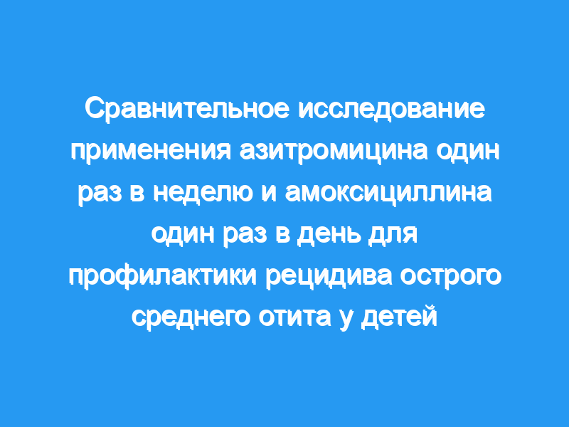 Мы сравнили 6-месячный курс азитромицина один раз в неделю (5 или 10 мг/кг массы тела) с амоксициллином один раз в день (20 мг/кг) в однократном слепом рандомизированном исследовании профилактики рецидивов АОМ у 159 детей в возрасте от 6 месяцев до 5 лет с по крайней мере тремя эпизодами АОМ за предыдущие 6 месяцев.