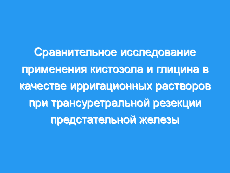 Автор сравнил кистозол и глицин в качестве ирригационных растворов во время трансуретральной резекции предстательной железы.