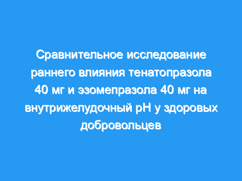 Сравнить влияние тенатопразола 40 мг и эзомепразола 40 мг на внутрижелудочную кислотность в течение первых 48 ч у здоровых добровольцев.