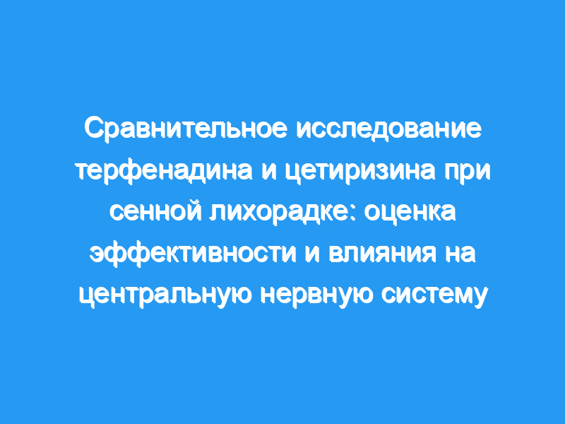 В заключение, результаты этого исследования подтверждают, что терфенадин и цетиризин одинаково эффективны при лечении сенной лихорадки.