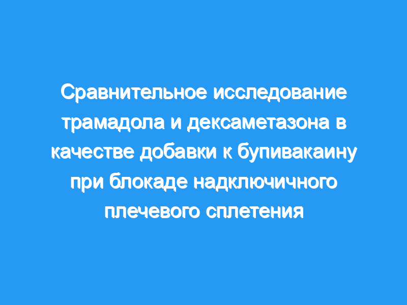 Всего 60 пациентов с ASA I и II, перенесших операцию на верхних конечностях при блокаде плечевого сплетения бупивакаином, были случайным образом разделены на две группы, одна группа получала трамадол (2 мг/кг), а другая группа получала дексаметазон (8 мг) в качестве добавки к бупивакаину.