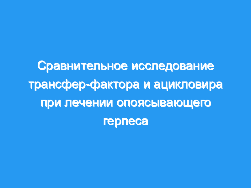 Однако ацикловир не был таким надежным, как интерферон альфа (IFN-альфа). Ранее мы рассматривали использование трансфер-фактора (ТФ) в качестве модулятора иммунной системы, в частности, в отношении его эффективности при лечении опоясывающего герпеса.