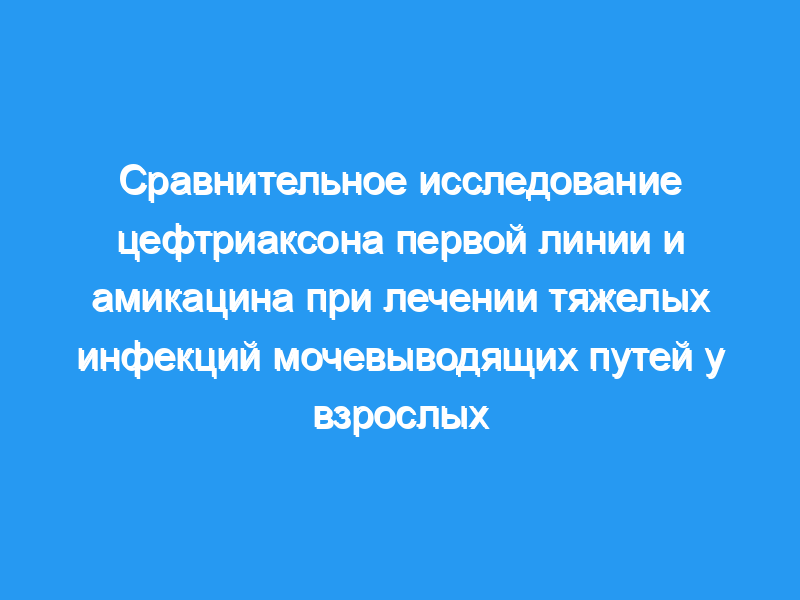 После рандомизации в 2 группы по 20 человек 40 взрослых пациентов с тяжелой инфекцией мочевыводящих путей (после урологической операции, пиелонефрит, простатит, неврологическая дисфункция мочевого пузыря, катетер Фолея) получали в качестве терапии первой линии цефтриаксон (CFX) 1 г/24 ч внутримышечно или амикацин (AMK) 500 мг/24 ч внутримышечно в течение не менее 5 дней.