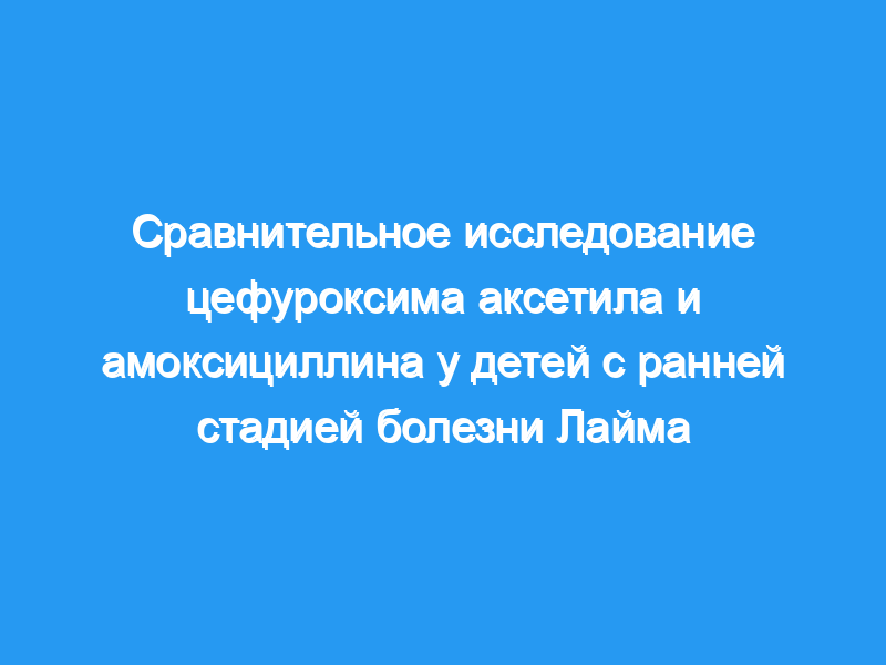 Количество пациентов в этом исследовании было недостаточным, чтобы продемонстрировать статистически значимую разницу между 3 группами, однако и амоксициллин, и цефуроксим аксетил, по-видимому, являются безопасными и эффективными методами лечения детей с ранним ЛД.
