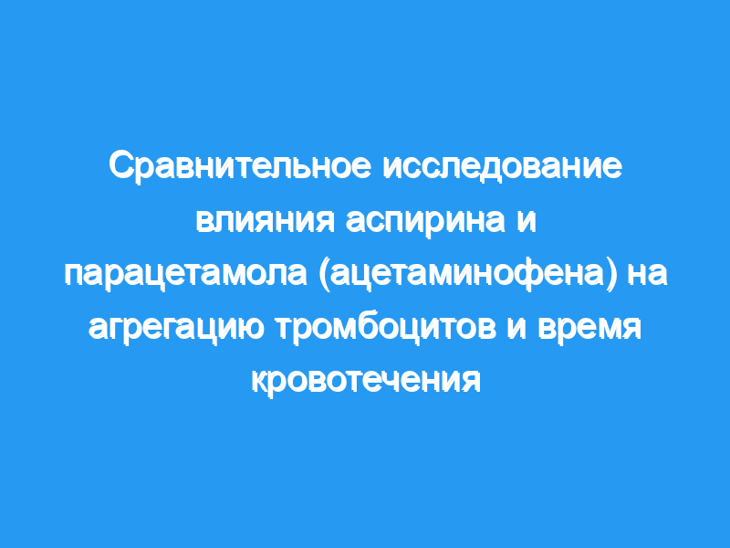 В двойном слепом рандомизированном исследовании сравнивали влияние 1 г аспирина и 1 г парацетамола на время кровотечения и агрегацию тромбоцитов у 40 добровольцев (20 женщин). Также была исследована взаимосвязь между активностью аспиринэстеразы плазмы крови и временем кровотечения и агрегацией тромбоцитов после приема аспирина.