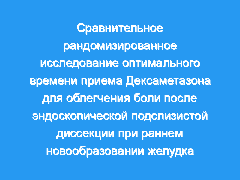 Целью данного исследования было сравнение клинических эффектов предоперационного и послеоперационного дексаметазона на боль после эндоскопической подслизистой диссекции (ESD) при раннем новообразовании желудка.
