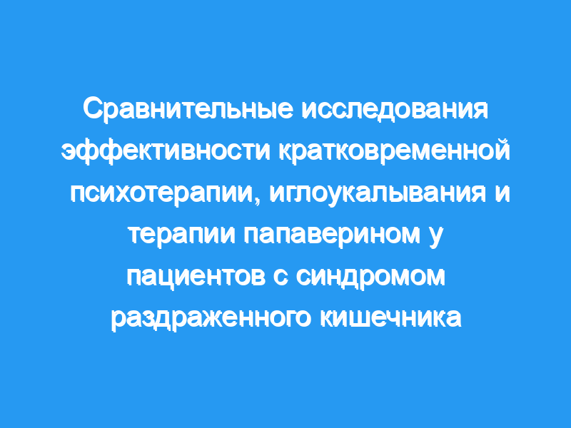 Иглоукалывание с долгосрочным успехом 31% значительно превосходит псевдоакупунктуру (17,2%). Терапия папаверином приводит к длительному состоянию без симптомов у 17,2% пациентов и значительно отличается от результатов терапии папаверином-плацебо (0%). Отчетливые различия в показателях успеха малой психотерапии с разными терапевтами доказывают роль личности и совершенства в овладении методами психотерапевтической процедуры.