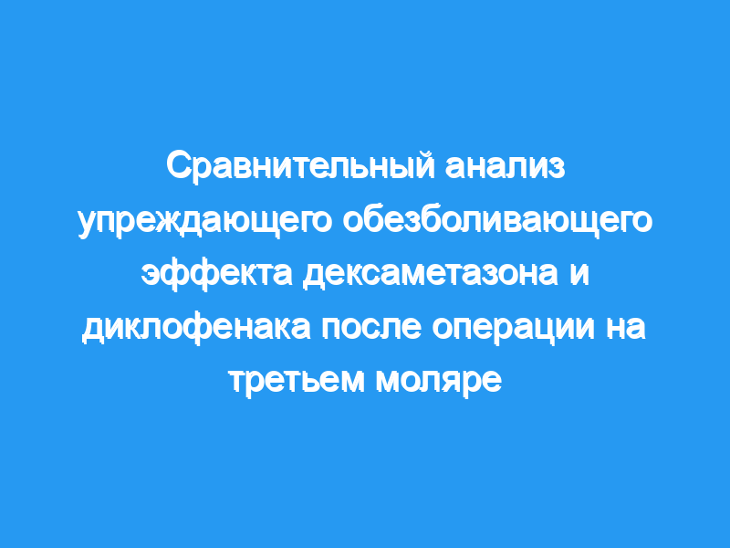 Целью исследования было сравнить обезболивающую эффективность дексаметазона и диклофенака натрия, вводимых превентивно после хирургического удаления третьего моляра.