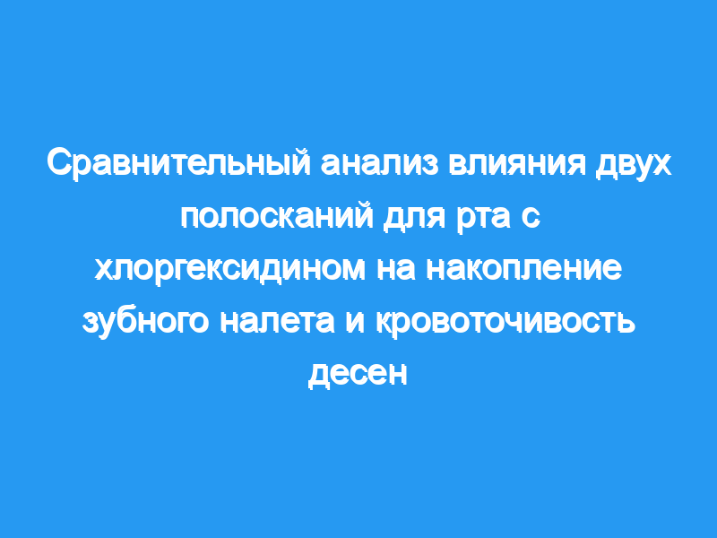 Целью настоящего исследования было оценить влияние двух растворов хлоргексидина для полоскания (0,12% и 0,2%) на зубной налет и кровоточивость десен.