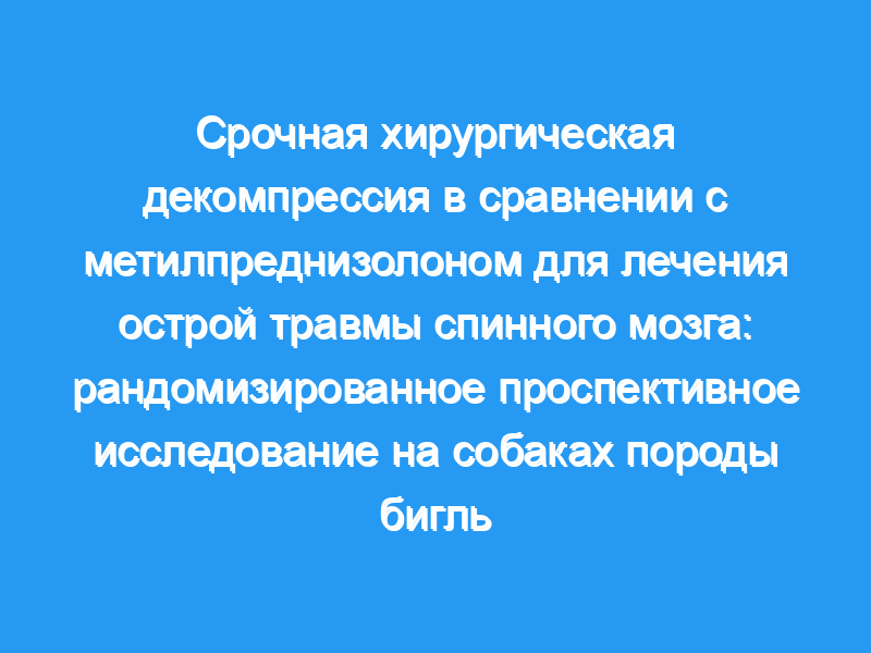 В условиях острой и постоянной компрессии спинного мозга у собак породы бигль хирургическая декомпрессия через 6 часов после травмы, с метилпреднизолоном или без него, более эффективна для улучшения неврологического восстановления, чем только метилпреднизолон.