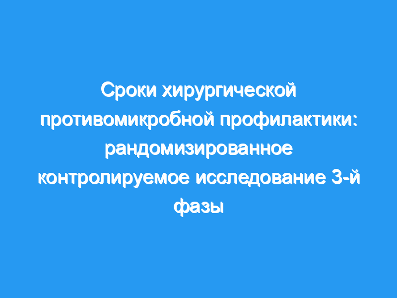 В этом рандомизированном контролируемом исследовании 3-й фазы мы включили взрослых стационарных пациентов общей хирургии (возраст ≥18 лет) в двух швейцарских больницах в Базеле и Арау. Пациенты были рандомизированы централизованно и стратифицированы по больницам в соответствии с ранее существовавшим сгенерированным компьютером списком в соотношении 1:1, чтобы получать SAP рано в анестезиологической палате или поздно в операционной. Пациенты и группа по оценке результатов были слепы к групповому распределению. SAP состоял из однократной внутривенной инфузии 1·5 г цефуроксима, обычно используемого цефалоспорина с коротким периодом полураспада, в течение 2-5 мин (в сочетании с 500 мг метронидазола при колоректальной хирургии). Первичной конечной точкой было возникновение SSI в течение 30 дней после операции. Основные анализы были сделаны с намерением лечить. Пробная версия зарегистрирована в ClinicalTrials.gov , номер NCT01790529. Результаты: В период с 21 февраля 2013 года по 3 августа 2015 года 5580 пациентов были рандомизированы для получения SAP рано (2798 пациентов) или поздно (2782 пациента). Было проанализировано 5175 пациентов (2589 в ранней группе и 2586 в поздней группе). Среднее время введения составило 42 мин до разреза в ранней группе (IQR 30-55) и 16 мин до разреза в поздней группе (IQR 10-25). Частота наблюдения в стационаре составила 100% (5175 из 5175 пациентов), частота амбулаторного 30-дневного наблюдения составила 88,8% (4596 из 5175), при общей частоте SSI 5,1% (234 из 4596). Раннее введение SAP существенно не снижало риск развития SSI по сравнению с поздним введением (отношение шансов 0·93, 95% ДИ 0·72-1·21 , p=0·601). Интерпретация: Наши результаты не подтверждают какого-либо сужения 60-минутного окна для введения цефалоспорина с коротким периодом полувыведения, тем самым устраняя необходимость во все более сложных рекомендациях по срокам SAP. Финансирование: Швейцарский Национальный научный фонд, Больница Арау, Базельский университет, Фонд Готфрида и Джулии Бангертер-Райнер, Фонд Гиппократа и Фонд Норы ван Меувен-Хефлигер.
