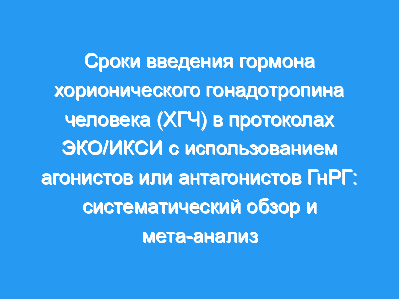 Оценить влияние изменения сроков введения хорионического гонадотропина человека (ХГЧ) на клинический исход экстракорпорального оплодотворения (ЭКО) и интрацитоплазматической инъекции сперматозоидов (ИКСИ) с использованием агониста или антагониста гонадотропного гормона, высвобождающего гормон (ГнРГ).