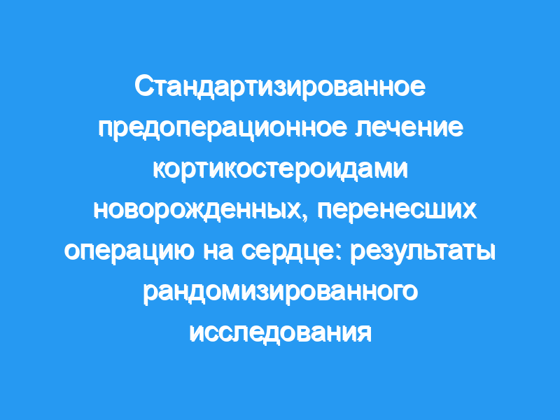 Повышенная воспалительная реакция возникает после операции на сердце. Периоперационное применение глюкокортикоидов пропагандируется как метод улучшения послеоперационных исходов. Рандомизированных проспективных исследований для количественной оценки влияния метилпреднизолона на периоперационные исходы в кардиохирургии новорожденных не проводилось. Мы стремились определить, улучшит ли предоперационный метилпреднизолон послеоперационное восстановление у новорожденных, нуждающихся в кардиохирургическом вмешательстве.