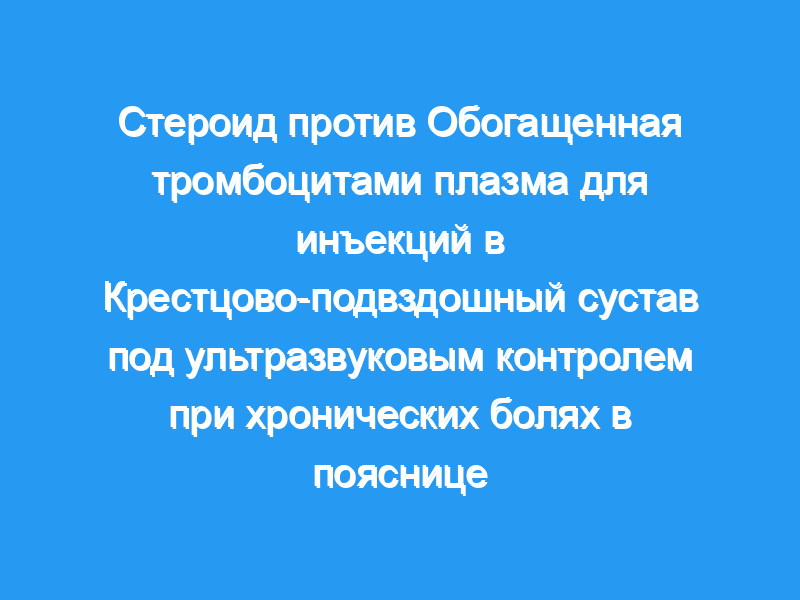 Несмотря на широкое использование стероидов для лечения боли в крестцово-подвздошном суставе (SIJ), их продолжительность уменьшения боли невелика. Обогащенная тромбоцитами плазма (PRP) потенциально может способствовать заживлению тканей и может оказывать более длительное воздействие на боль.
