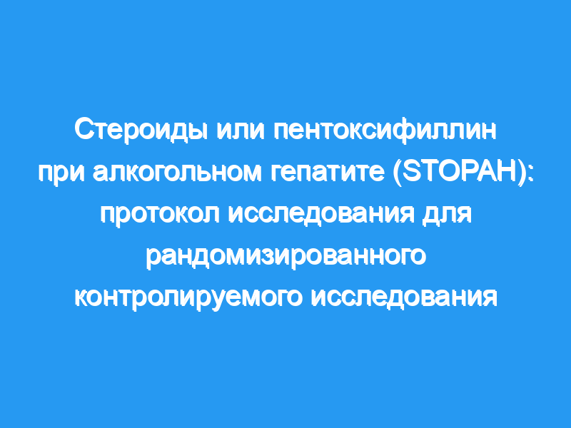 Алкогольный гепатит — наиболее яркое проявление заболевания печени, связанного с алкоголем. При его тяжелой форме, определяемой дискриминантной функцией Мэддри (DF) ≥32, 28-дневная смертность составляет примерно 35%. Ряд потенциальных методов лечения был подвергнут клиническим испытаниям, два из которых, кортикостероиды и пентоксифиллин, могут иметь терапевтическую пользу. Роль кортикостероидов является спорной, поскольку результаты испытаний были противоречивыми, в то время как роль пентоксифиллина требует подтверждения, поскольку было опубликовано только одно предыдущее плацебо-контролируемое исследование. Методы/дизайн: STOPAH — это многоцентровое двойное слепое факторное (2 × 2) исследование, в котором пациенты рандомизированы в одну из четырех групп:1. Группа А: плацебо/плацебо2. Группа В: плацебо/преднизолон3. Группа С: пентоксифиллин/плацебо4. Группа D: пентоксифиллин / Преднизолон Цель исследования — рандомизировать 1200 пациентов с тяжелым алкогольным гепатитом, чтобы обеспечить достаточную мощность для определения эффективности любого из двух вмешательств. Первичной конечной точкой исследования является смертность через 28 дней, а вторичными конечными точками являются смертность через 90 дней и 1 год.