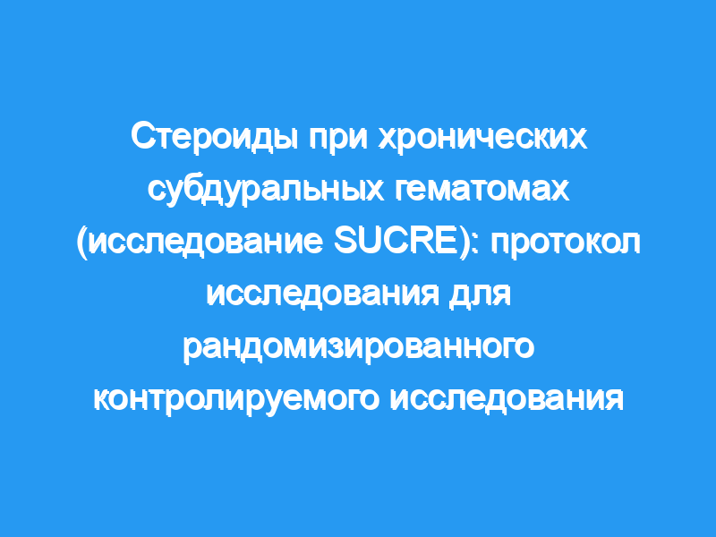 Хроническая субдуральная гематома (CSDH) является распространенной неврологической патологией, особенно у пожилых пациентов. Фактическим «золотым стандартом» лечения является хирургическая эвакуация с использованием различных методов, используемых в нейрохирургических бригадах. С годами появляется все больше свидетельств того, что воспалительные процессы играют важную роль в патогенезе ХСД. В этом контексте было предложено использовать кортикостероиды отдельно или в качестве вспомогательного средства к хирургическому вмешательству. Тем не менее, эта практика остается очень эмпирической, и существует необходимость в исследованиях высокого качества доказательств для уточнения роли кортикостероидов в лечении ХСД. Методы/дизайн: Мы предлагаем двойное слепое рандомизированное контролируемое исследование, сравнивающее метилпреднизолон с плацебо при лечении ХСД без клинических и/или рентгенологических признаков тяжести. Лечение будет проводиться ежедневно в течение 3 недель в дозе 1 мг/кг. Первичной конечной точкой будет задержка начала хирургического лечения на 1 месяц после начала лечения. Вторичные конечные точки будут включать частоту обращения к хирургическому вмешательству, выживаемость, качество жизни и функциональные оценки, возникновение системных побочных эффектов и радиологическую оценку ответа на лечение. Эта мультимодальная оценка будет проводиться через 1, 3 и 6 месяцев. Ожидается, что в исследование будут включены двести два пациента (101 на руку), учитывая наши основные гипотезы.