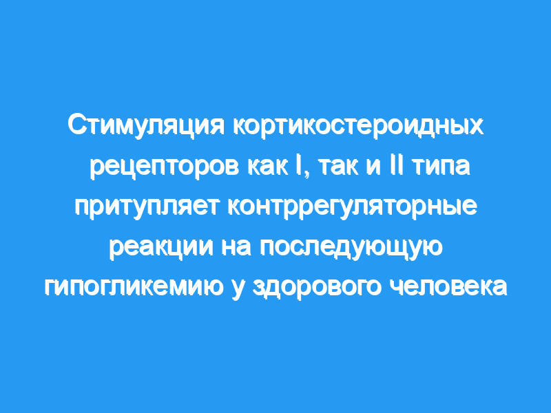 Как кортикостероидные рецепторы типа I, так и типа II могут быть вовлечены во множество механизмов, контролирующих контррегуляторные реакции на гипогликемию у здоровых людей. мужчина.