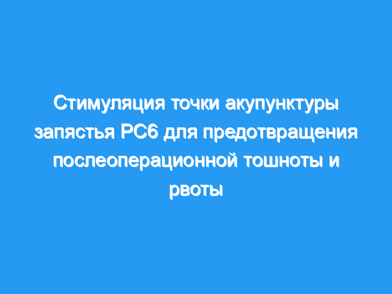 Послеоперационная тошнота и рвота (PONV) являются распространенными осложнениями после операции и анестезии. Противорвотные препараты лишь частично эффективны в предотвращении PONV. Альтернативный подход заключается в стимуляции акупунктурной точки PC6 на запястье. Это обновление кокрейновского обзора, впервые опубликованного в 2004 году, обновленного в 2009 году, а теперь и в 2015 году.
