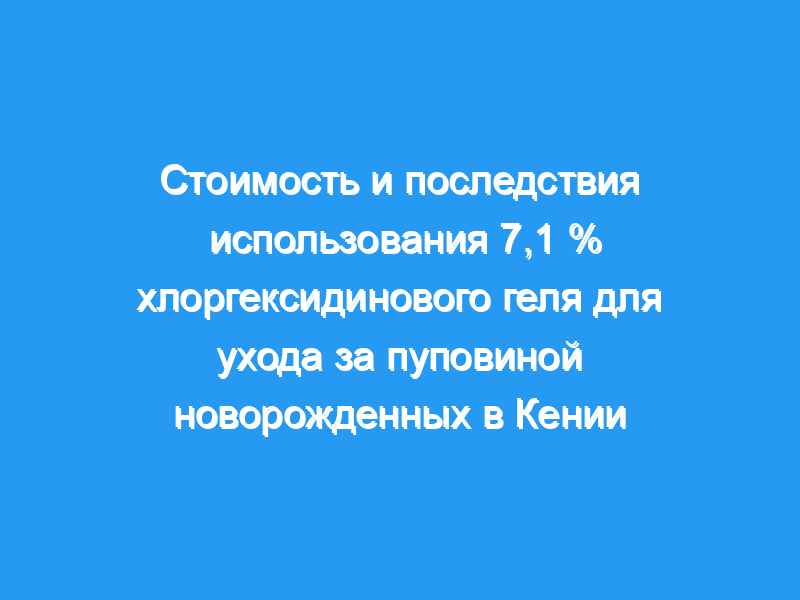 Омфалит является важной причиной неонатальной смертности в Кении. Хлоргексидина диглюконат 7,1 % по массе (CHX, эквивалент 4% по массе хлоргексидина) был признан Организацией Объединенных Наций жизненно важным средством для ухода за пуповиной новорожденных и включен в списки основных лекарственных средств Всемирной организации здравоохранения и Кении. В этом пилотном исследовании оценивалась потенциальная экономия ресурсов и безубыточная цена внедрения CHX для неонатального ухода за пуповиной по сравнению с сухим уходом за пуповиной (DCC) в Кении.