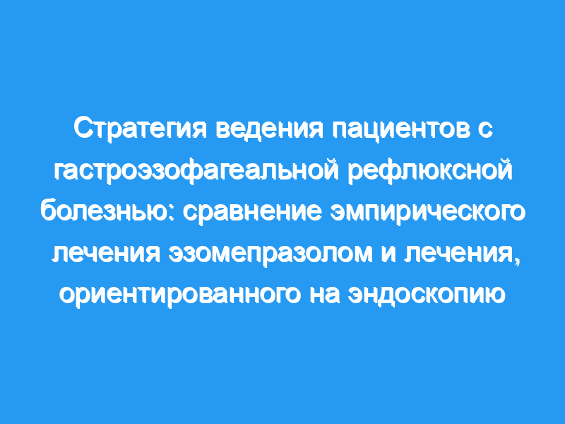 У пациентов с ГЭРБ эмпирическое лечение эзомепразолом оказалось экономически эффективным по сравнению с лечением, ориентированным на эндоскопию, и не оказало негативного влияния на HRQL пациента. Эти результаты следует учитывать при ведении пациентов с ГЭРБ в клинической практике.