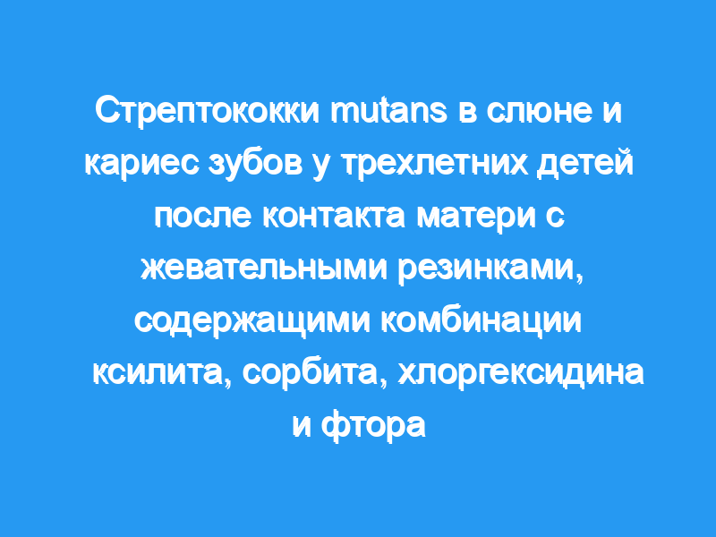 Целью данного исследования было оценить влияние использования матерями жевательных резинок, содержащих комбинации ксилита, сорбита, хлоргексидина и фтора, на количество мутантных стрептококков (MS) в слюне и распространенность кариеса у 3-летних детей матерей.