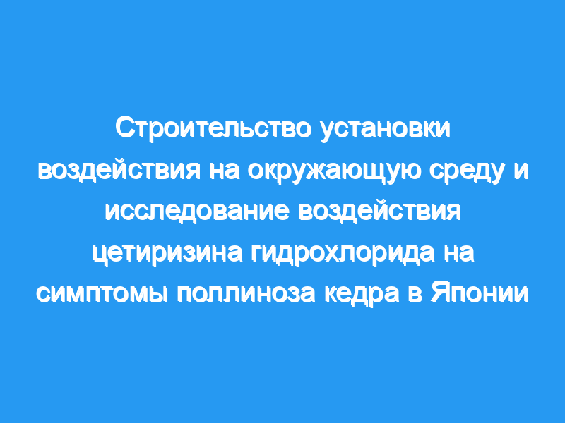 Кедровый поллиноз — широко распространенная сезонная аллергия, характерная только для Японии. Подразделения по воздействию на окружающую среду (EEU) помогают в разработке эффективных терапевтических и профилактических мер, поскольку исследования на открытом воздухе ограничены сезонными колебаниями воздействия пыльцы.