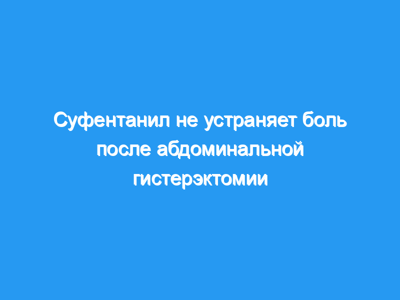 Мы сравнили влияние внутривенного (внутривенного) введения суфентанила на послеоперационную боль и потребность в обезболивании, когда он вводился до или после абдоминальной гистерэктомии.