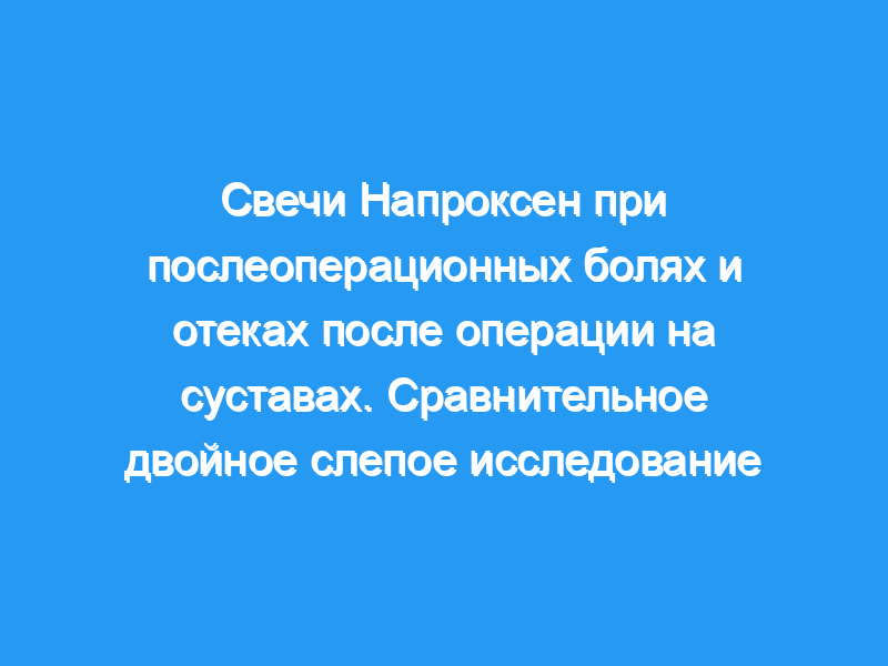 Всего 105 пациентов с ревматизмом, по 35 в каждой из трех групп, приняли участие в двойном слепом параллельном исследовании, в котором сравнивались суппозитории напроксен (Напросин, Синтекс) в дозе 500 мг с суппозиториями оксифенбутазон (Тандерил, Гейги) в дозе 250 мг и плацебо при послеоперационных болях и отеках после операций на суставах.