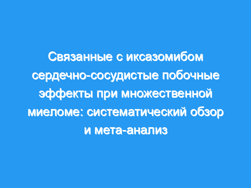 Целью этого систематического обзора и мета-анализа было определить частоту сердечно-сосудистых нежелательных явлений, связанных с иксазомибом (ССАЭС), и сравнить частоту иксазомиба-ассоциированные ССЗ и сопутствующая терапия.