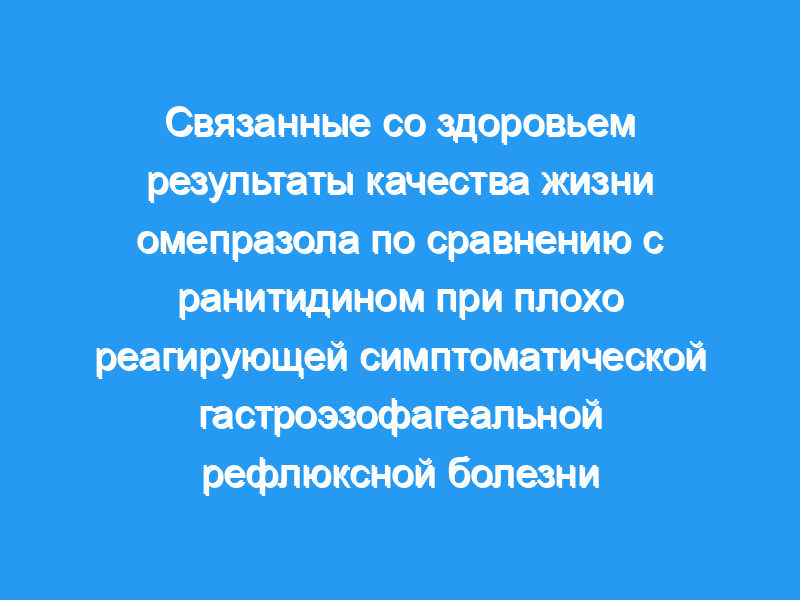 В двойном слепом рандомизированном клиническом исследовании сравнивали омепразол и ранитидин для лечения плохо реагирующей ГЭРБ. Подходящие пациенты имели в анамнезе преобладающие симптомы изжоги с симптоматической изжогой после 6 недель лечения ранитидином. Пациенты были рандомизированы на омепразол в дозе 20 мг один раз в день (n = 156) или ранитидин в дозе 150 мг два раза в день (n = 161) и наблюдались в течение 8 недель. Оценки были завершены в начале и через 8 недель с использованием симптомов, оцененных врачом: Шкала оценки симптомов желудочно-кишечного тракта (GSRS), Индекс общего психологического благополучия (PGWB), Шкала сна, Шкала влияния на повседневную деятельность и Общий эффект лечения. Основными конечными точками HRQL были шкала рефлюкса GSRS и общий балл PGWB.