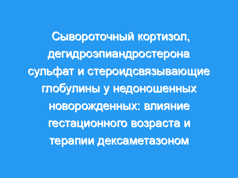 Гестационный возраст коррелировал с концентрациями общего кортизола в пуповине (r = 0,702, p <, 0,01), свободного кортизола (r = 0,489, p <, 0,05), DHEAS (r = 0,608, p <, 0,01) и SHBG (r = 0,831, p <, 0,01), но незначительно с концентрацией CBG (r = 0,428, p = 0,076). Однонедельная терапия DEX снизила сывороточные концентрации CBG (DEX 295 нмоль/л, плацебо 504 нмоль/л, p <, 0,01), DHEAS (DEX 6,5 ммоль/л, плацебо 11,8 ммоль/л, p <, 0,05) и базальные (DEX 81 нмоль/л).Л, плацебо 176 нмоль/л, p <, 0,01) и уровни кортизола, стимулированного АКТГ (DEX 458 нмоль/л, плацебо 817 нмоль/л, p <, 0,05). Через неделю после прекращения приема ДЕКС или плацебо базальные концентрации кортизола существенно не различались, но уровни кортизола, стимулированного АКТГ, были ниже у детей, получавших ДЕКС, чем у детей, получавших плацебо.