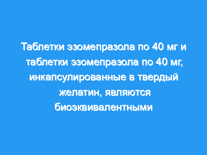Для исследования биоэквивалентности таблеток эзомепразола MUPS по 40 мг, вводимых с твердой желатиновой капсулой и без нее.