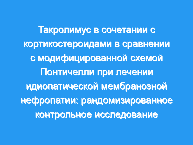 Пациенты с идиопатической мембранозной нефропатией (n = 70) с персистирующим нефротическим синдромом по крайней мере через 6 месяцев антипротеинурической терапии или с осложнениями нефротического синдрома были одинаково рандомизированы для получения TAC с пероральным преднизолоном (TAC*) или MPR. Антитела против рецептора фосфолипазы А2 м-типа (PLA2R Ab) были протестированы на исходном уровне и через 6 и 12 месяцев после начала терапии. Первичной конечной точкой было достижение ремиссии, а вторичными целями были побочные эффекты и оценка скорости клубочковой фильтрации в обеих исследуемых группах.