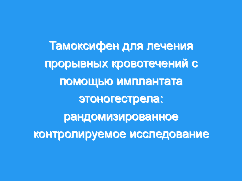 Первое применение тамоксифена пользователями имплантатов ENG сокращает количество дней кровотечения/кровянистых выделений и обеспечивает более длительное прекращение кровотечения/кровянистых выделений, чем плацебо, без ущерба для подавления овуляции. Необходимы дальнейшие исследования, чтобы определить, сохраняется ли этот эффект при повторном применении. Последствия: У женщин с частыми прорывными кровотечениями, связанными с имплантацией ENG, может наблюдаться уменьшение количества дней кровотечения/кровянистых выделений и увеличение количества дней без кровотечений в течение месяца после первого применения тамоксифена. Этот короткий курс тамоксифена хорошо переносился, при этом прекращение кровотечения отмечалось в среднем через 5 дней.