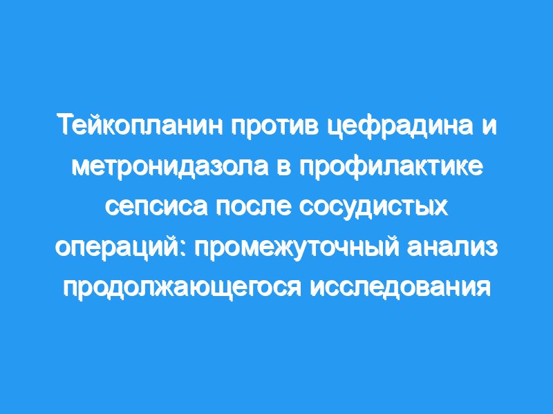 В этой статье представлены дополнительные предварительные результаты исследования профилактики сепсиса у 165 пациентов, перенесших операцию на сосудах.