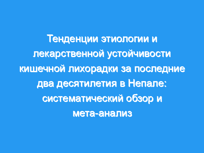Используя опубликованные и неопубликованные наборы данных из Непала, мы провели систематический обзор и мета-анализ, чтобы понять тенденции в этиологии и устойчивости к противомикробным препаратам, которые произошли с 1993 год. Было проведено тридцать два исследования с участием 21 067 изолятов Salmonella enterica серотипа Typhi (ST) и S. enterica серотипа Paratyphi A (SPA).