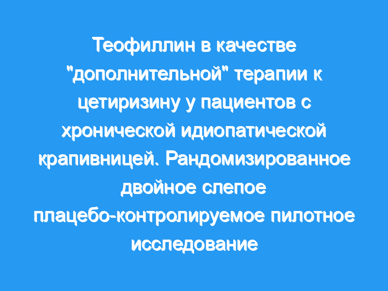 Хроническая крапивница является распространенным заболеванием, связанным со значительной инвалидизацией. Его патогенез четко не изучен и подразделяется на аутоиммунную и хроническую идиопатическую крапивницу (КИУ). Мы исследовали, может ли неспецифический ингибитор фосфодиэстеразы теофиллин обеспечить дополнительную пользу антагонисту рецептора гистамина-1 (H-1R) цетиризину в CIU.