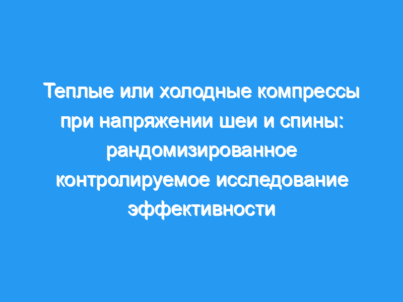 Острые боли в спине и шее встречаются очень часто. В дополнение к введению анальгетиков, эти штаммы часто лечат либо тепловыми, либо холодными компрессами. Целью этого исследования было сравнить обезболивающую эффективность тепла и холода в облегчении боли при напряжении спины и шеи. Авторы предположили, что облегчение боли не будет отличаться между горячими и холодными компрессами.