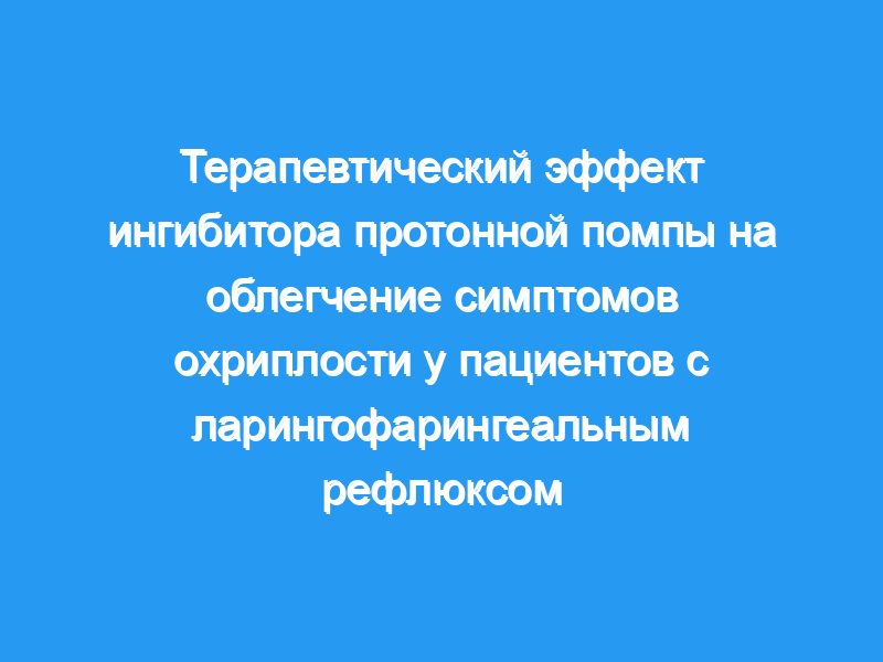 Терапия ИППП может значительно облегчить симптомы охриплости у пациентов с ЛПР.
