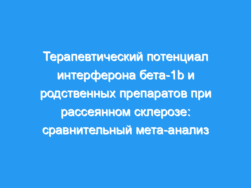 Целью данного текущего мета-анализа является определение того, является ли ИФН бета-1b существенно лучше, чем другие иммуномодулирующие, иммуносупрессивные или противовоспалительные препараты, в изменении клинического течения рецидивирующе-ремиттирующего и вторично прогрессирующего рассеянного склероза (RR MS, SP MS). Сравнение показывает, что при 2-летнем лечении ИФН бета-1b, бета-1a внутривенно, глатирамера ацетат, иммуноглобулин G внутривенно и митоксантрон внутривенно снижали ежегодную частоту рецидивов (45%), увеличивали долю пациентов без рецидивов (34%), снизил средний уровень инвалидности (-0,23 в EDSS) и уменьшил долю пациентов с RR MS с устойчивым прогрессированием (25%), p <, or = 0,05. Азатиоприн продемонстрировал значительную задержку начала действия и потерю эффективности на третьем году лечения.