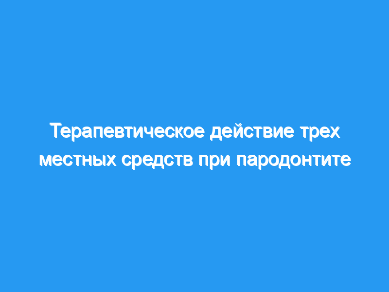 В общей сложности 123 пациента были случайным образом разделены на 3 группы для получения 3 местных лекарственных средств, вводимых в пародонтальные карманы. Была рассчитана общая частота ответов на 3 процедуры, и наблюдались изменения в GI, PL I, PD и BO P.