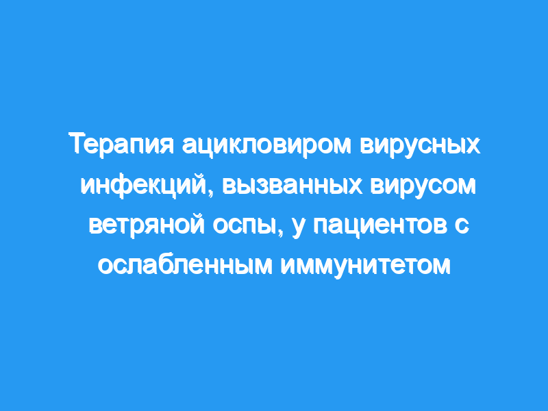 В рандомизированном, плацебо-контролируемом двойном слепом исследовании внутривенного введения ацикловира при лечении инфекций, вызванных вирусом ветряной оспы (VZV), 8 из 20 детей с ослабленным иммунитетом, больных ветряной оспой, получали ацикловир (500 мг/м2/доза три раза в день в течение 7 дней). Не было выявлено существенной разницы в заживлении кожи между группами ацикловира и плацебо, хотя наблюдалось значительное снижение частоты развития поражения легких во время лечения ацикловиром.