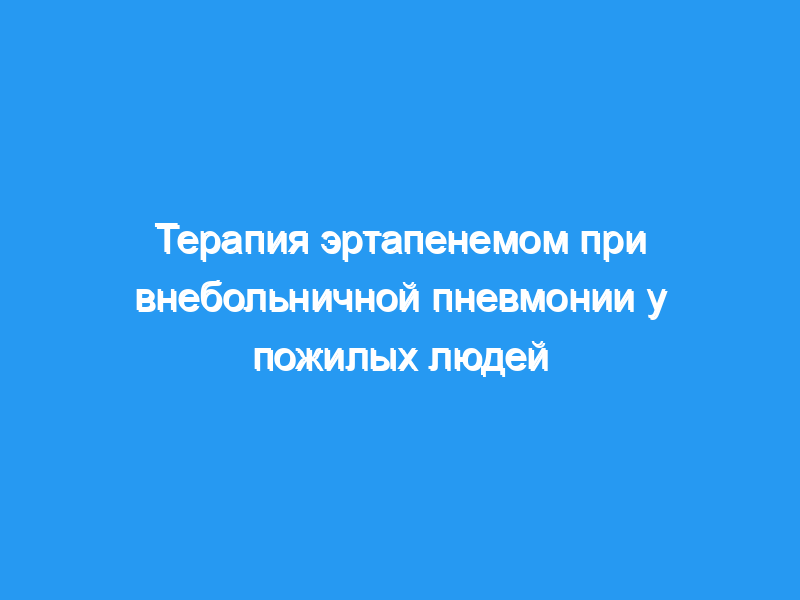 Эртапенем по 1 г один раз в день был высокоэффективен для лечения пожилых пациентов с ВП, нуждающихся в парентеральной терапии, и был столь же эффективен, как и цефтриаксон. Эртапенем, как правило, хорошо переносился, с общим профилем безопасности, сходным с цефтриаксоном.