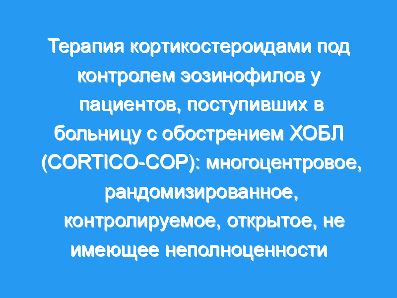 Лечение системными кортикостероидами у пациентов с острыми обострениями хронической обструктивной болезни легких (ХОБЛ) связано с изнурительными побочными эффектами. Поэтому срочно требуются стратегии снижения системного воздействия кортикостероидов, которые могут быть предложены с помощью индивидуального подхода к лечению, основанного на биомаркерах. Целью этого исследования было определить, может ли алгоритм, основанный на подсчете эозинофилов в крови, безопасно снизить системное воздействие кортикостероидов у пациентов, поступивших в больницу с острыми обострениями ХОБЛ.