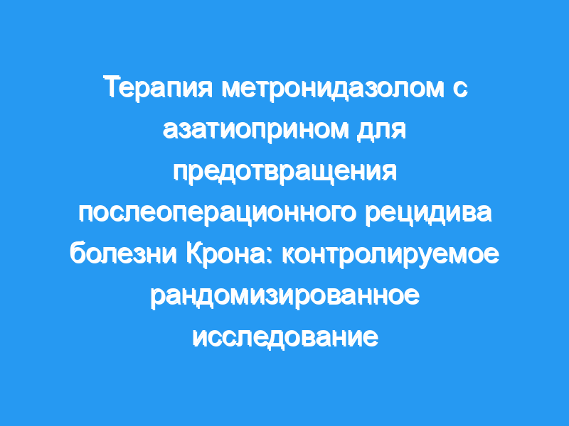 Предпосылки и цели: Более 80% пациентов с болезнью Крона (БК), перенесших резекцию, страдают от рецидива заболевания. Терапия аминосалицилатами, антиметаболитами или антибиотиками приводит к умеренному снижению частоты рецидивов. Цель: Мы стремились изучить, превосходит ли метронидазол в течение 3 месяцев вместе с азатиоприном (AZA) в течение 12 месяцев по сравнению с метронидазолом в одиночку для уменьшения рецидива послеоперационного БК у пациентов «высокого риска».