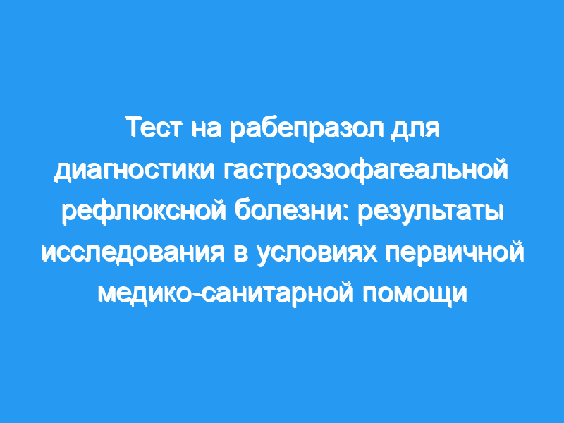 Для определения диагностической ценности теста на рабепразол у пациентов, наблюдаемых врачами общей практики. Восемьдесят три пациента с симптомами, указывающими на ГЭРБ, были включены врачами общей практики в это многоцентровое рандомизированное двойное слепое исследование. Все пациенты получали либо рабепразол (20 мг бид), либо плацебо в течение одной недели. Диагноз ГЭРБ был установлен на основании наличия разрывов слизистой оболочки при эндоскопии и/или аномального 24-часового рН-теста пищевода. Тест считался положительным, если пациенты сообщали по крайней мере о «явном улучшении» симптомов по 7-балльной шкале Лайкерта.