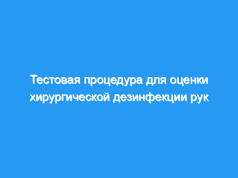Описанный тест может быть использован справочными центрами и производителями для оценки эффективности новых и существующих составов для дезинфекции хирургических рук.< / p>