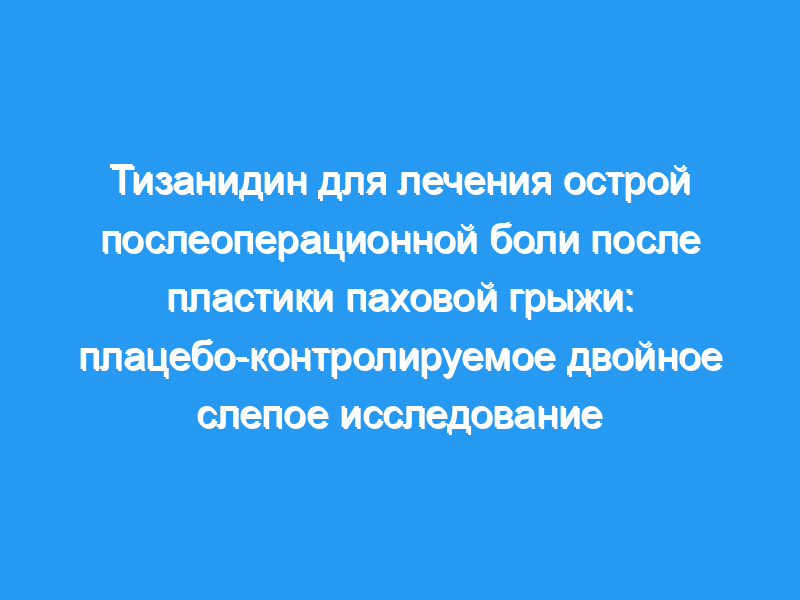 Учебно-исследовательский госпиталь имени Дискапи Йилдирима Беязита. Вмешательства: После получения этического одобрения и информированного согласия пациента 60 пациентов, перенесших операцию по удалению паховой грыжи под общим наркозом, были случайным образом распределены в одну из двух групп. Пациенты группы Т получали тизанидин в дозе 4 мг перорально за 1 ч до операции и дважды в день в течение первой послеоперационной недели. Пациенты из группы Р получали такое же лечение с помощью таблеток плацебо. Обе группы получали стандартную схему обезболивающего лечения, включающую внутривенное введение декскетопрофена в дозе 25 мг до введения анестезии, декскетопрофена в дозе 25 мг перорально три раза в день в течение 1 недели и внутривенное введение парацетамола в дозе 1 г в конце операции. Дополнительную анальгезию обеспечивали парацетамолом, если визуальная числовая шкала оценки (NRS) составляла не менее 4 см. Основные показатели результата: Послеоперационную боль оценивали с помощью NRS. Определяли общее потребление анальгетика. Возвращение к нормальной повседневной активности оценивалось с использованием пятибалльной оценки ежедневной активности после первой послеоперационной недели, а качество жизни, связанное со здоровьем, оценивалось с использованием краткой формы-36 через месяц после операции.