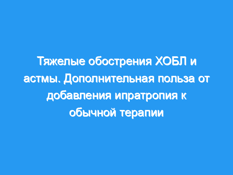 Мы провели рандомизированное двойное слепое исследование для оценки дополнительной пользы в течение 24 часов применения ипратропия бромида. добавление ипратропия в сравнении с плацебо к стандартизированному режиму приема лекарств, обычно используемых при остром и последующем стационарном лечении ХОБЛ и астмы.