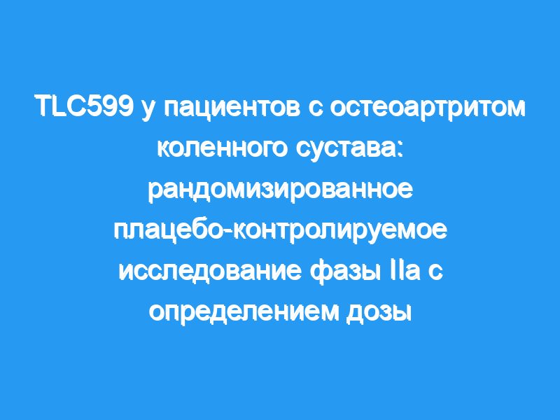 У участников с симптоматическим остеоартритом коленного сустава TLC599 является хорошо переносимым средством, которое уменьшает боль и улучшает функцию на срок до 24 недель, что является более длительным сроком, чем сообщалось для существующих методов лечения ИА. Пробная регистрация: ClinicalTrials.gov , NCT03005873 . Зарегистрирован 29 декабря 2016 года.